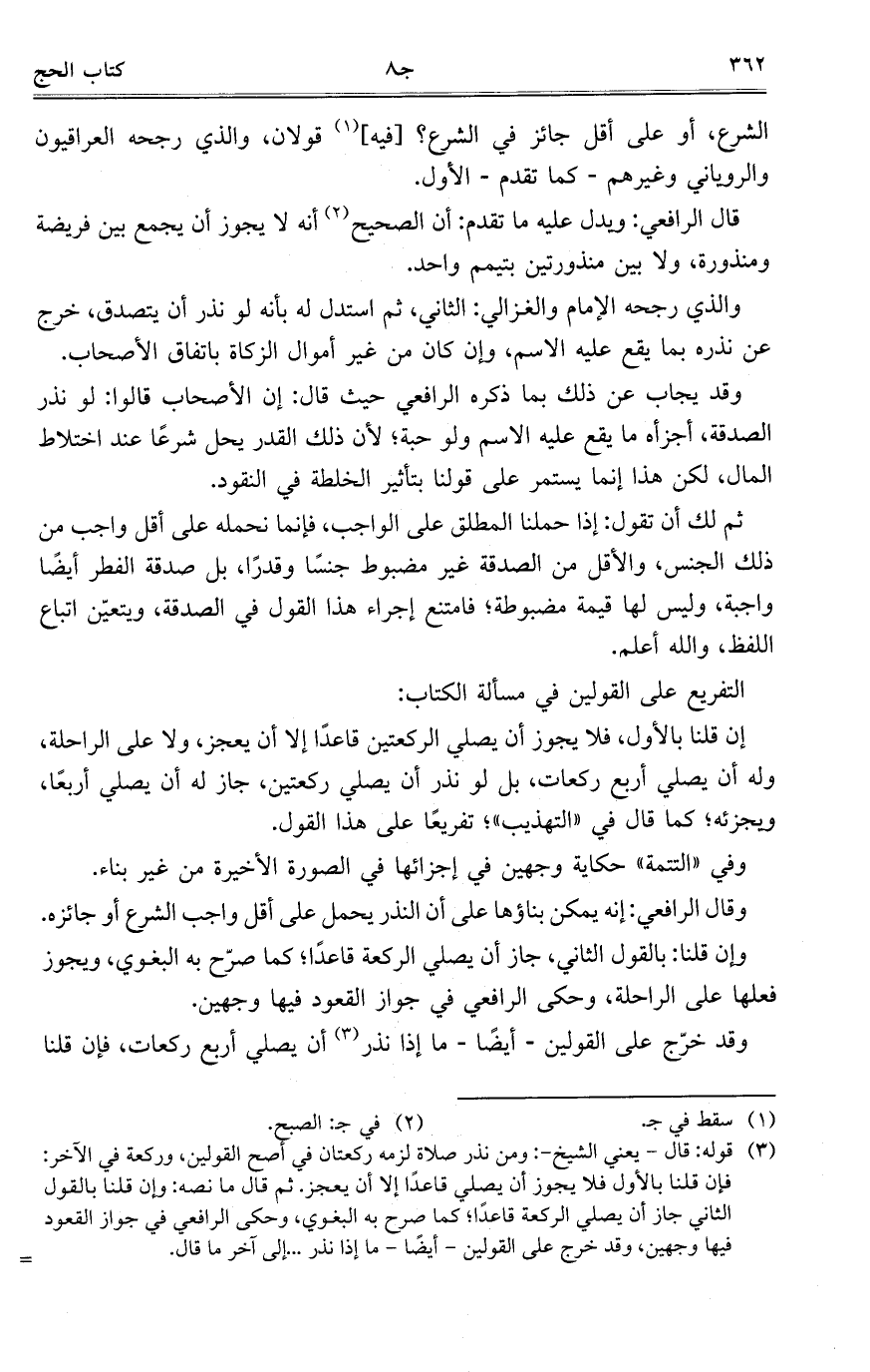 وقال الرافعي: إنه يمكن بناؤها على أن النذر يحمل على أقل واجب الشرع أو جائزه.