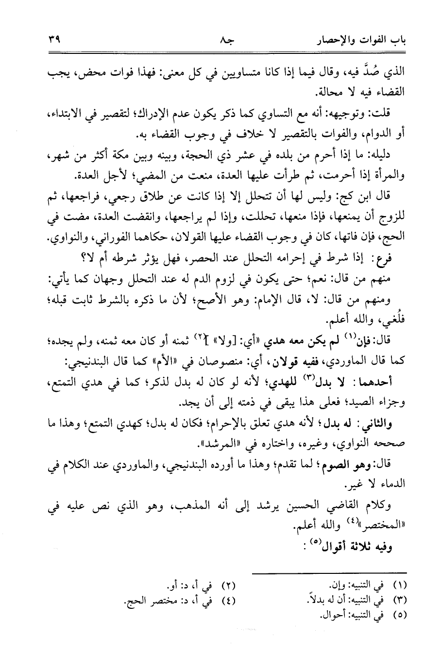 منهم من قال: نعم؛ حتى يكون في لزوم الدم له عند التحلل وجهان كما يأتي: