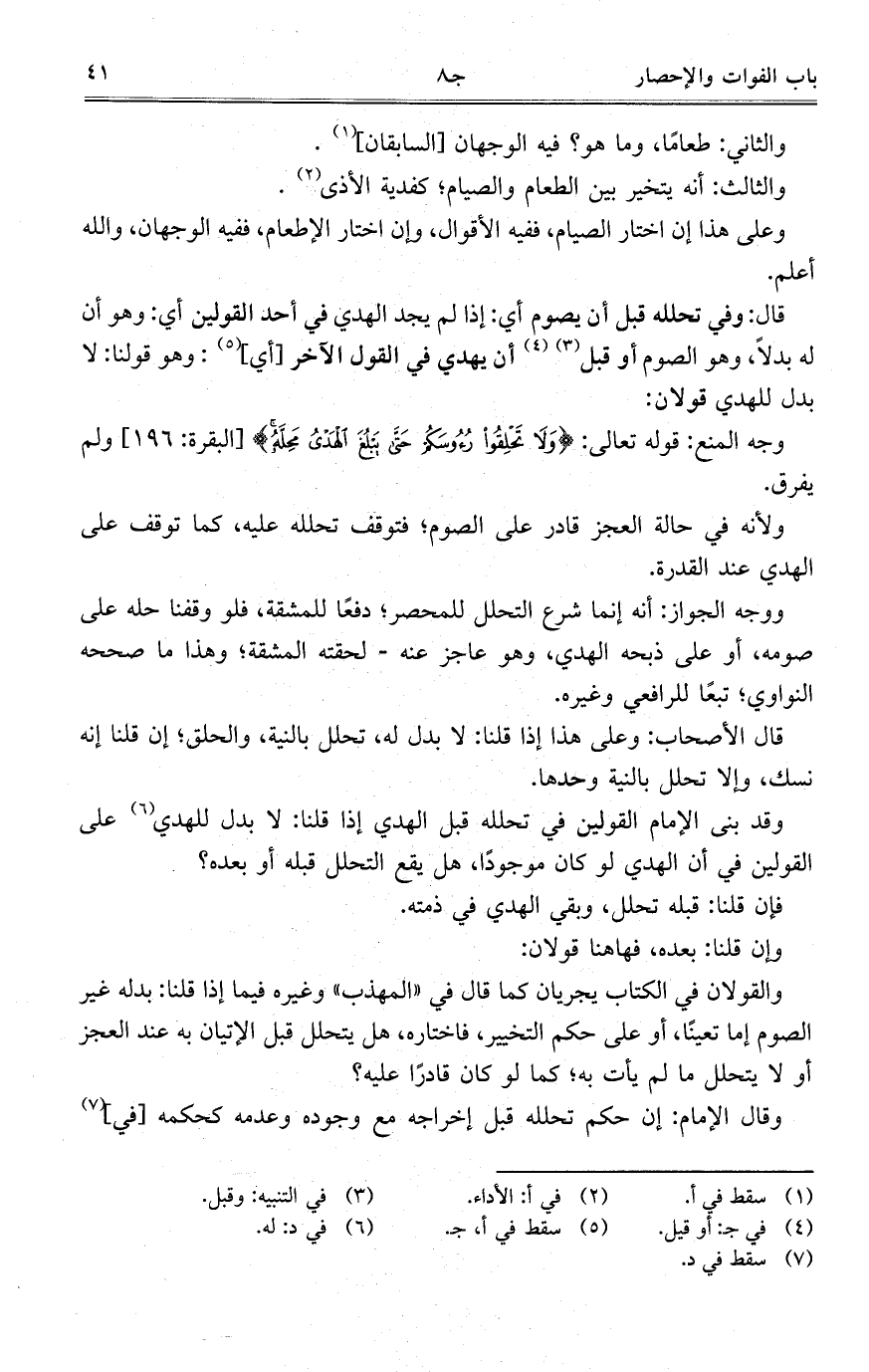 وقال الإمام: إن حكم تحلله قبل إخراجه مع وجوده وعدمه كحكمه [في]