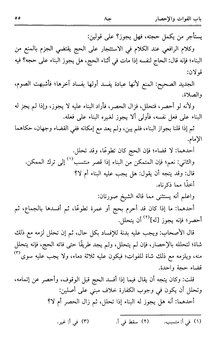 وكلام الرافعي عند الكلام في الاستئجار على الحج يقتضي الجزم بالمنع من البناء؛ فإنه قال: الحاج لنفسه إذا مات في أثناء الحج، هل يجوز البناء على حجه؟ فيه قولان: