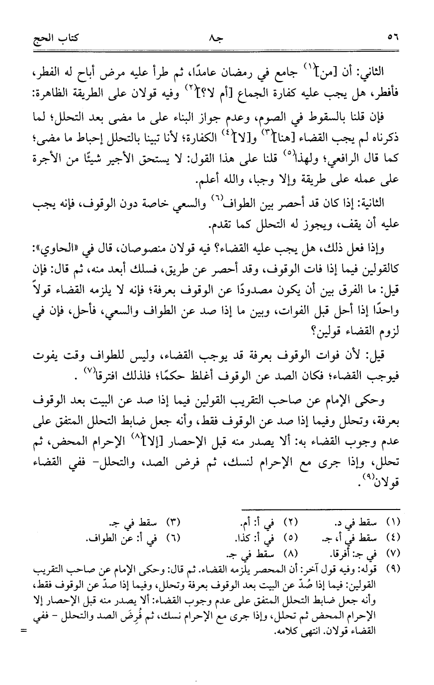 الثانية: إذا كان قد أحصر بين الطواف والسعي خاصة دون الوقوف، فإنه يجب عليه أن يقف، ويجوز له التحلل كما تقدم.