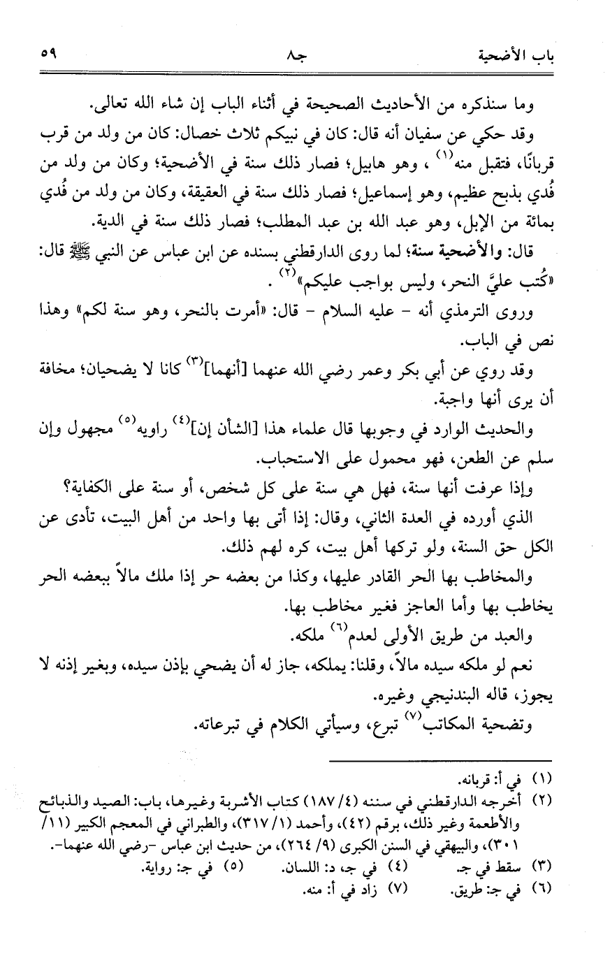 قال: والأضحية سنة؛ لما روى الدارقطني بسنده عن ابن عباس عن النبي - صلى الله عليه وسلم - قال: "كتب علي النحر، وليس بواجب عليكم".