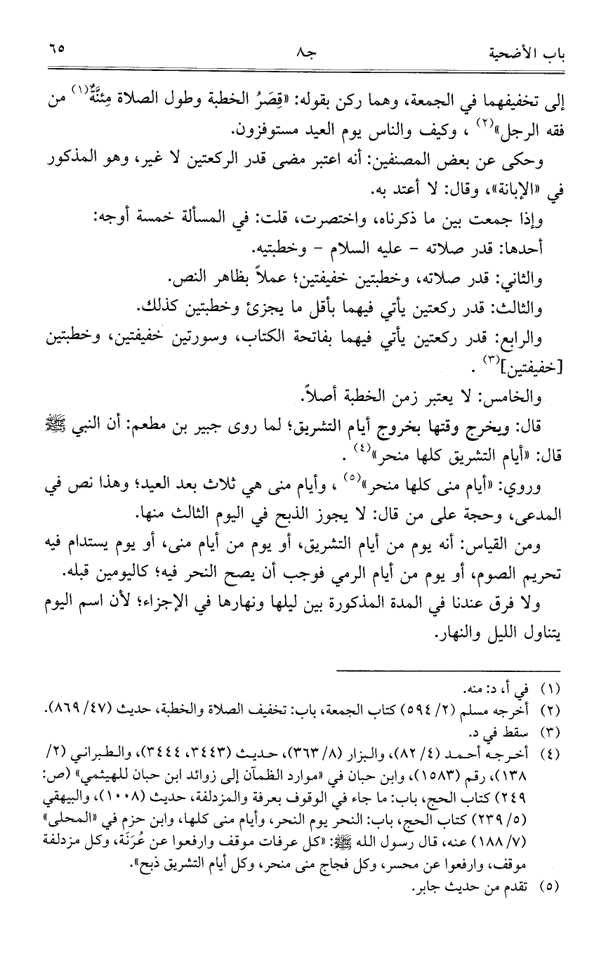 أحدها: قدر صلاته- عليه السلام- وخطبتيه.