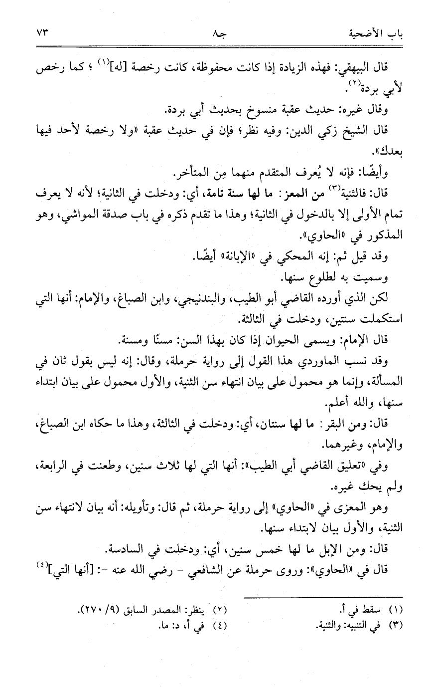 قال: ومن البقر: ما لها سنتان، أي: ودخلت في الثالثة، وهذا ما حكاه ابن الصباغ، والإمام، وغيرهما.