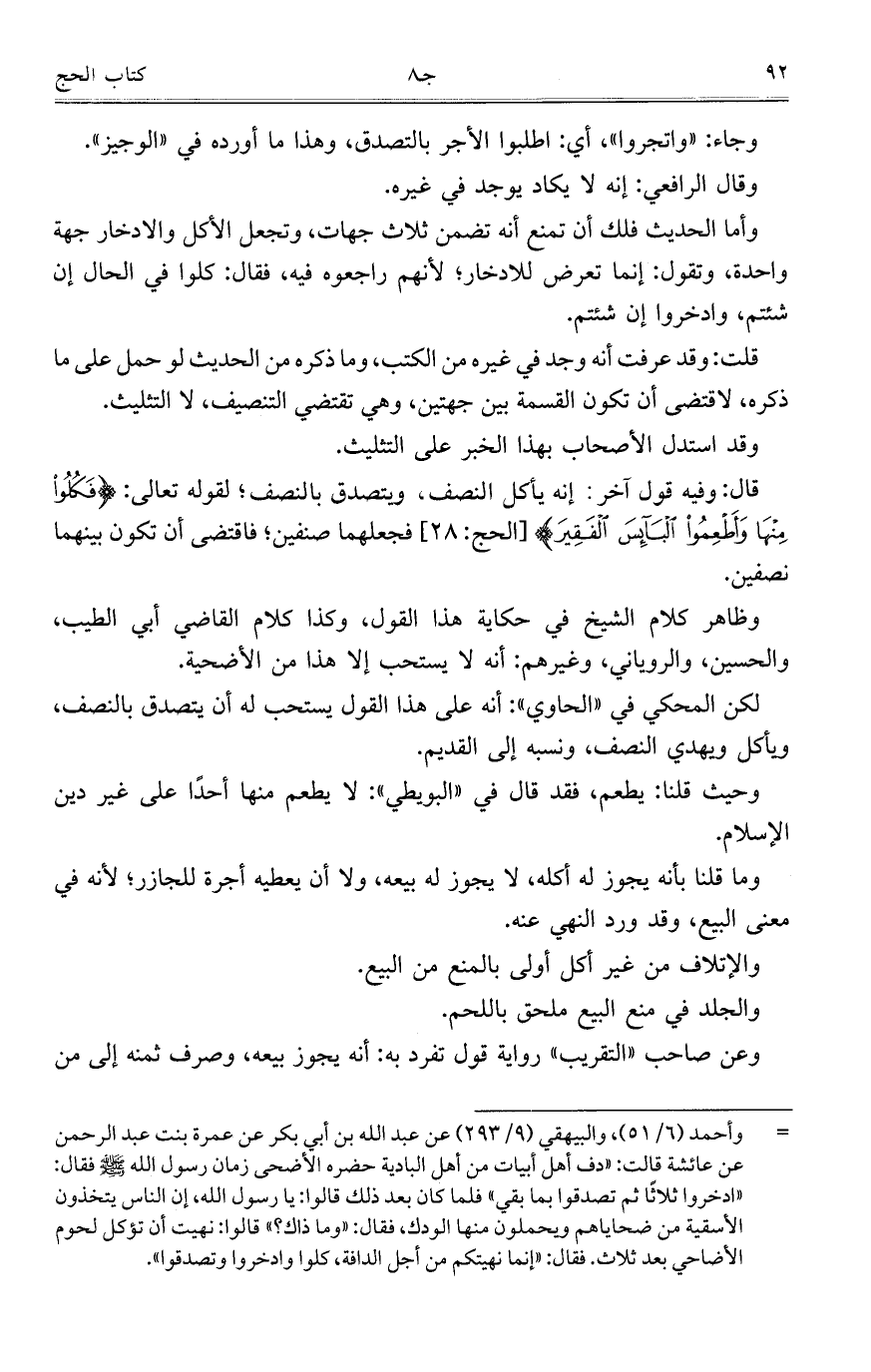 وأما الحديث فلك أن تمنع أنه تضمن ثلاث جهات، وتجعل الأكل والادخار جهة واحدة، وتقول: إنما تعرض للادخار؛ لأنهم راجعوه فيه، فقال: كلوا في الحال إن شئتم، وادخروا إن شئتم.