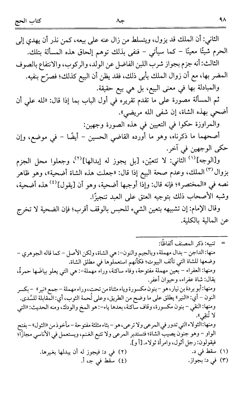وقال الإمام: إن تشبيهه بتعين الشيء للحبس بالوقف أقرب؛ فإن الضحية لا تخرج عن المالية بالكلية.