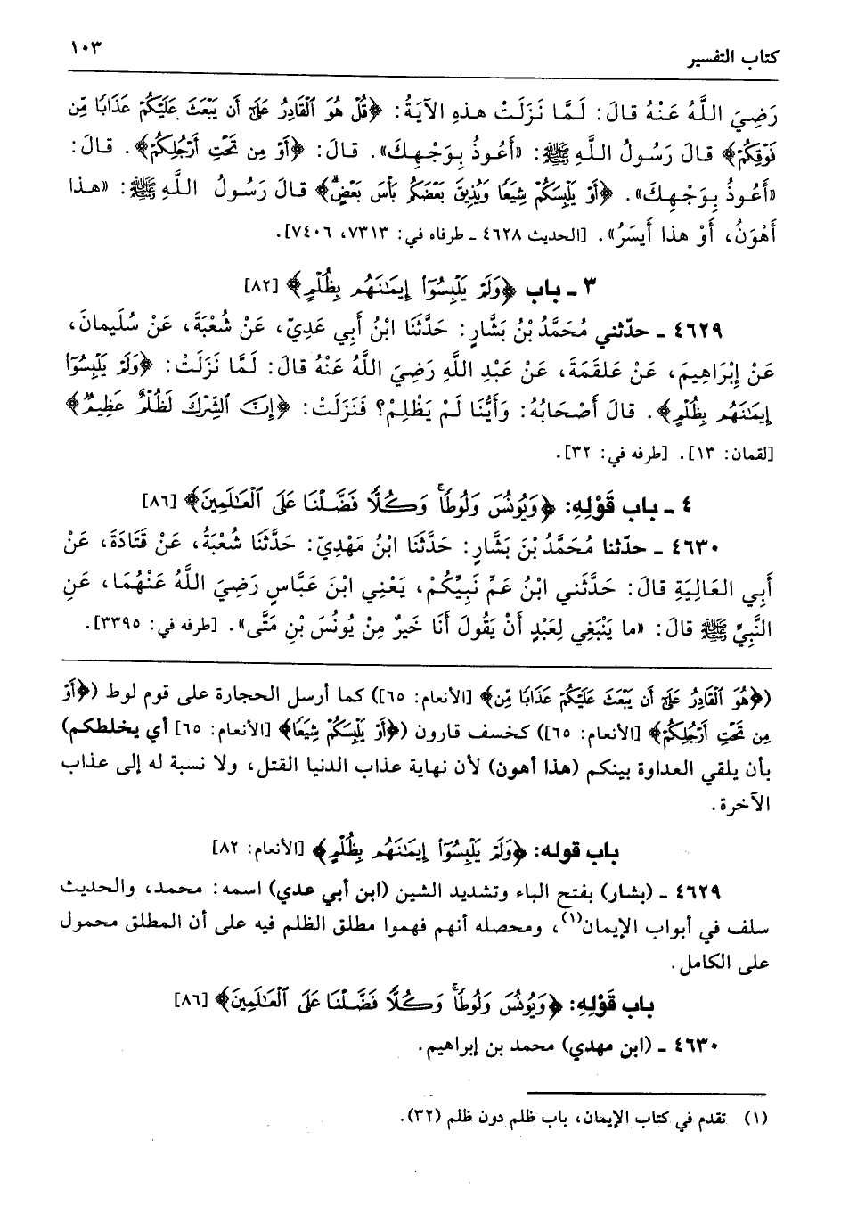 4629 - (بشار) بفتح الباء وتشديد الشين (ابن أبي عدي) اسمه: محمد، والحديث سلف في أبواب الإيمان، ومحصله أنهم فهموا مطلق الظلم فيه على أن المطلق محمول على الكامل.
