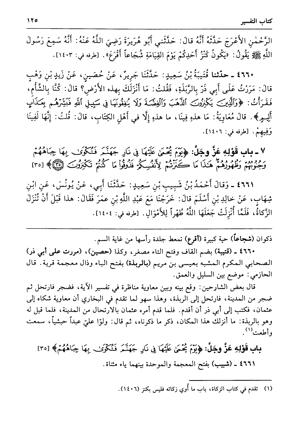 باب قَوْلِهِ عَز وجلّ: {يَوْمَ يُحْمَى عَلَيْهَا فِي نَارِ جَهَنَّمَ فَتُكْوَى بِهَا جِبَاهُهُمْ} [35]