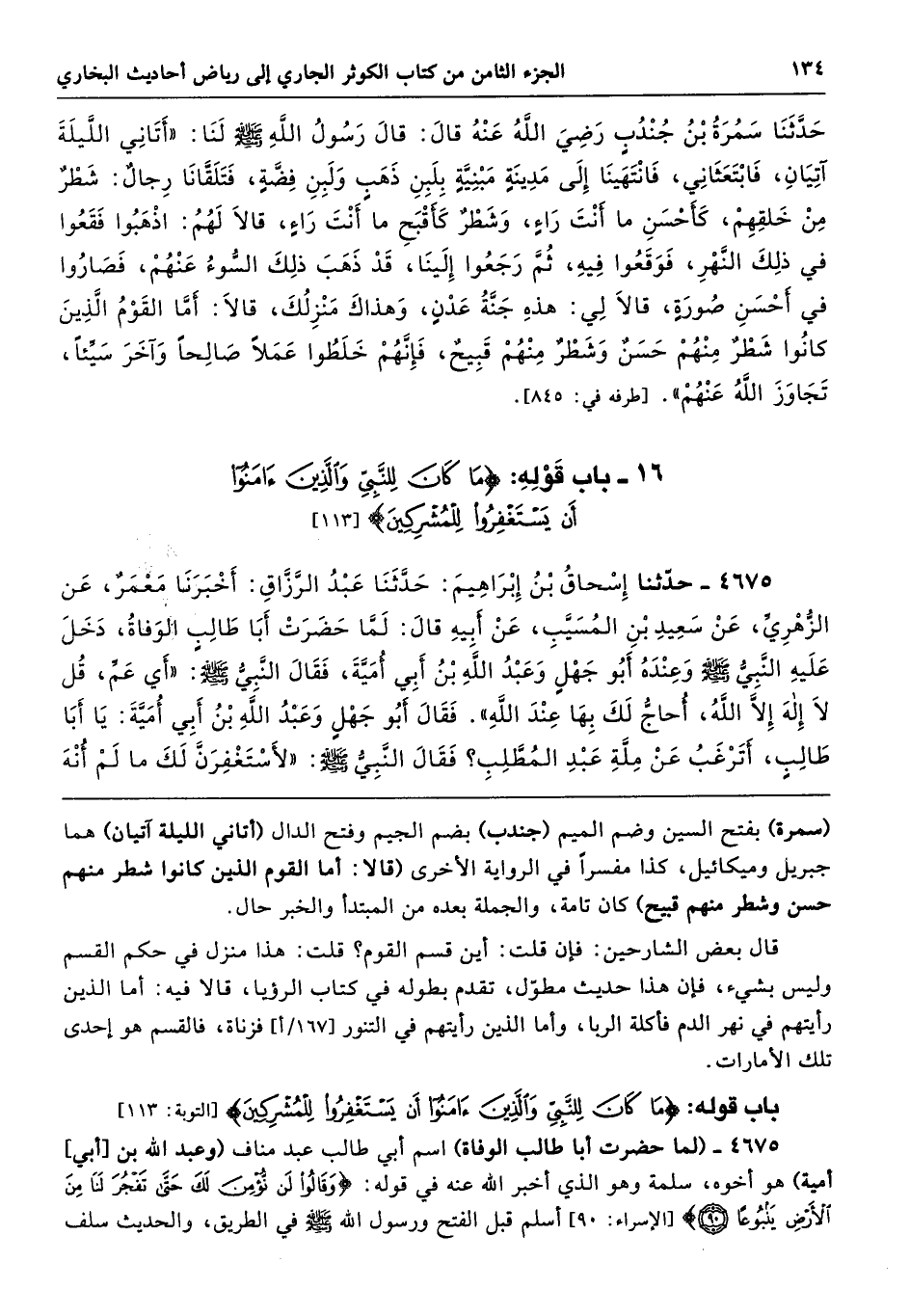 باب قوله: {مَا كَانَ لِلنَّبِيِّ وَالَّذِينَ آمَنُوا أَنْ يَسْتَغْفِرُوا لِلْمُشْرِكِينَ} [التوبة: 113]