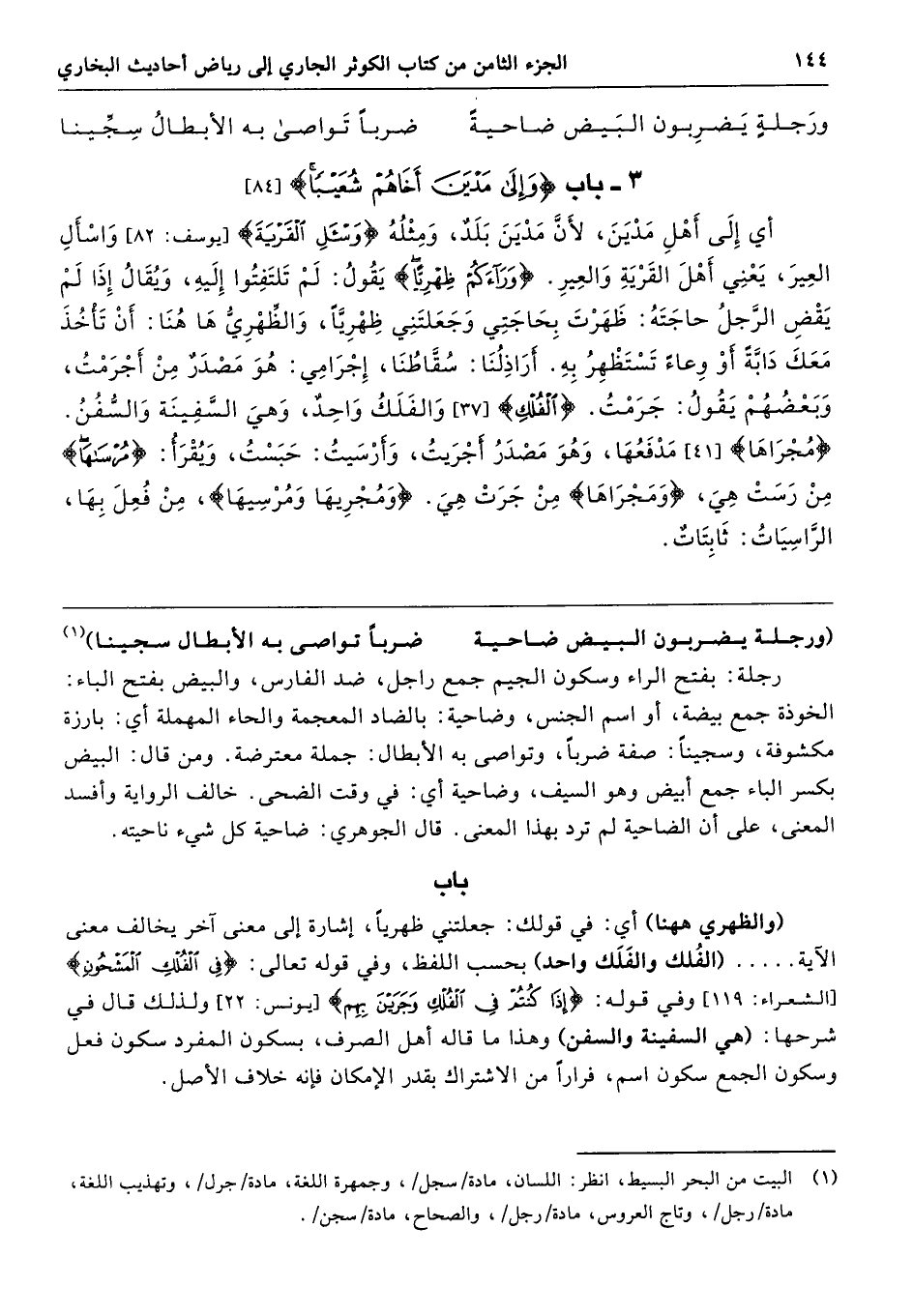 كتاب الكوثر الجاري إلى رياض أحاديث البخاري (اسم الجزء: 8)