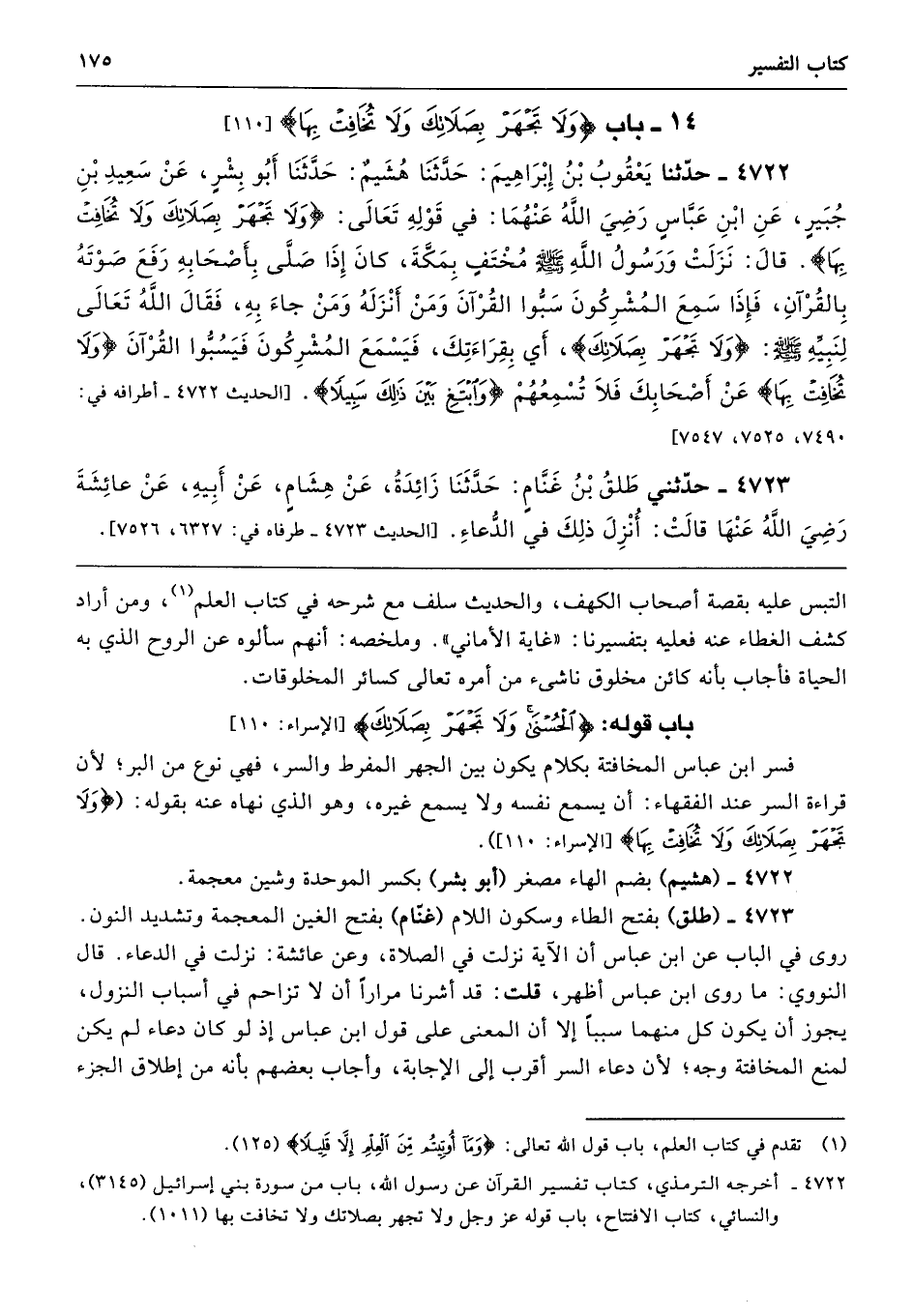 باب قوله: {الْحُسْنَى وَلَا تَجْهَرْ بِصَلَاتِكَ} [الإسراء: 110]