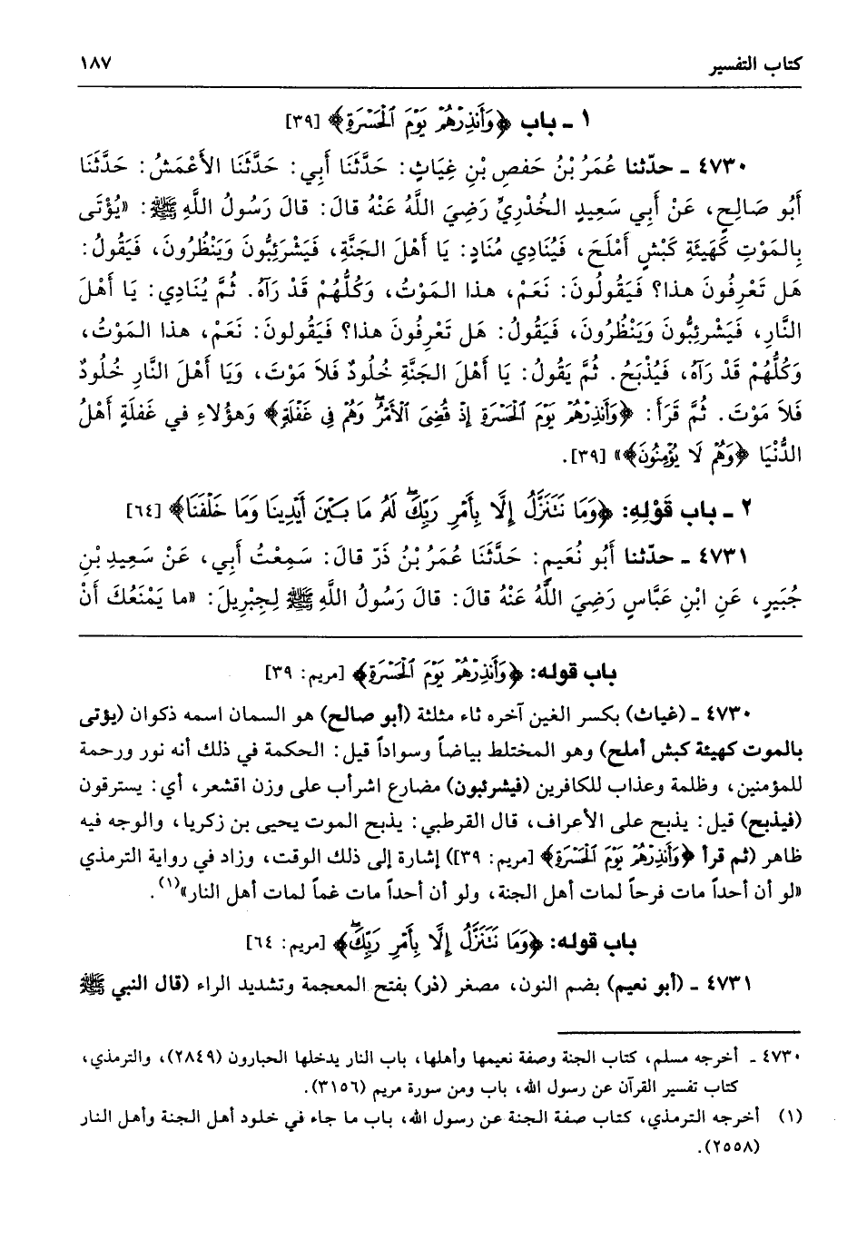 باب قوله: {وَأَنْذِرْهُمْ يَوْمَ الْحَسْرَةِ} [مريم: 39]