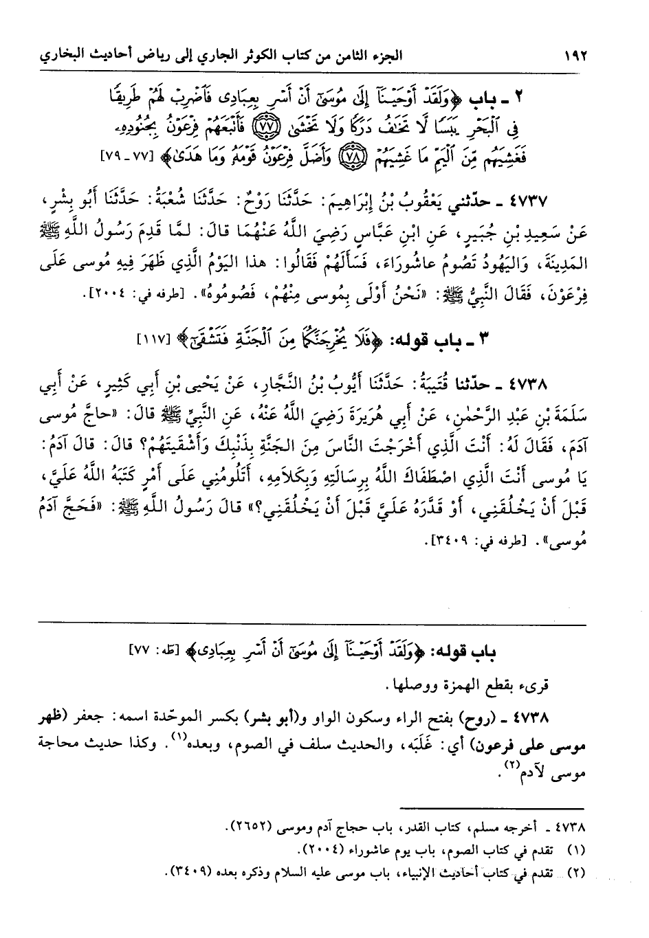 باب قوله: {وَلَقَدْ أَوْحَيْنَا إِلَى مُوسَى أَنْ أَسْرِ بِعِبَادِي} [طه: 77]