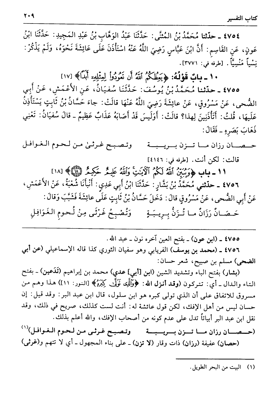 4756 - (محمَّد بن يوسف) الفريابي وهو سفيان الثوري كذا قاله الإسماعيلي (عن أبي الضحى) مسلم بن صبيح، شعر حسَّان: