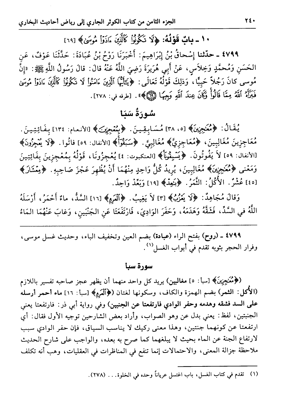 4799 - (روح) بفتح الراء (عبادة) بضم العين وتخفيف الباء، وحديث غسل موسى، وفرار الحجر بثوبه تقدم في أبواب الغسل.
