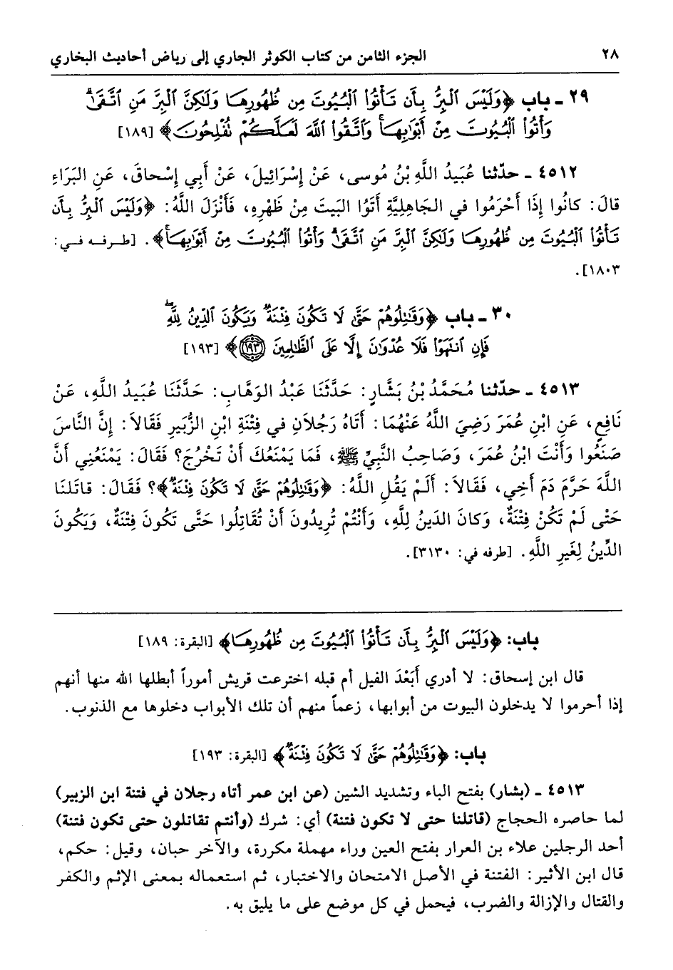 باب: {وَلَيْسَ الْبِرُّ بِأَنْ تَأْتُوا الْبُيُوتَ مِنْ ظُهُورِهَا} [البقرة: 189]