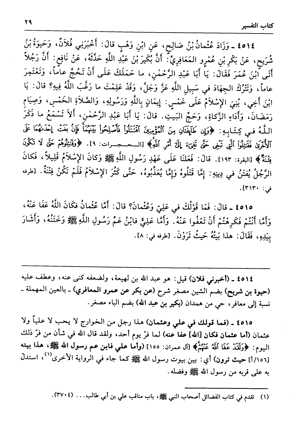 4514 - (أخبرني فلان) قيل: هو عبد الله بن لهيعة، ولضعفه كنى عنه، وعطف عليه (حيوة بن شريح) بضم الشين مصغر شرح (عن بكر عن عمرو المعافري) -بالعين المهملة- نسبة إلى معافر، حي من همدان (بكير بن عبد الله) بضم الباء مصغر.