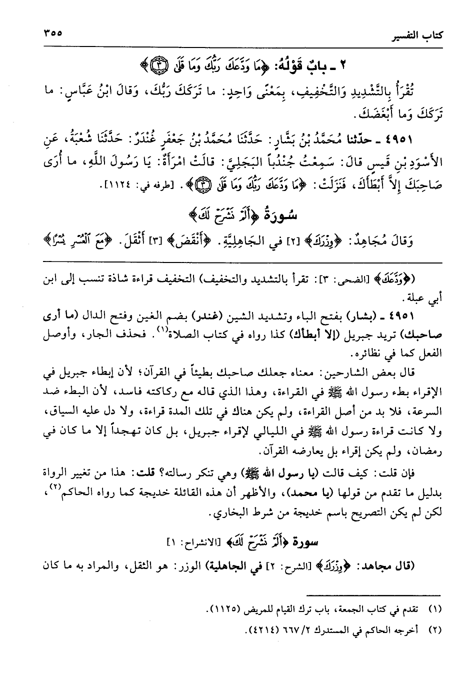 ({وَدَّعَكَ} [الضحى: 3]: تقرأ بالتشديد والتخفيف) التخفيف قراءة شاذة تنسب إلى ابن أبي عبلة.