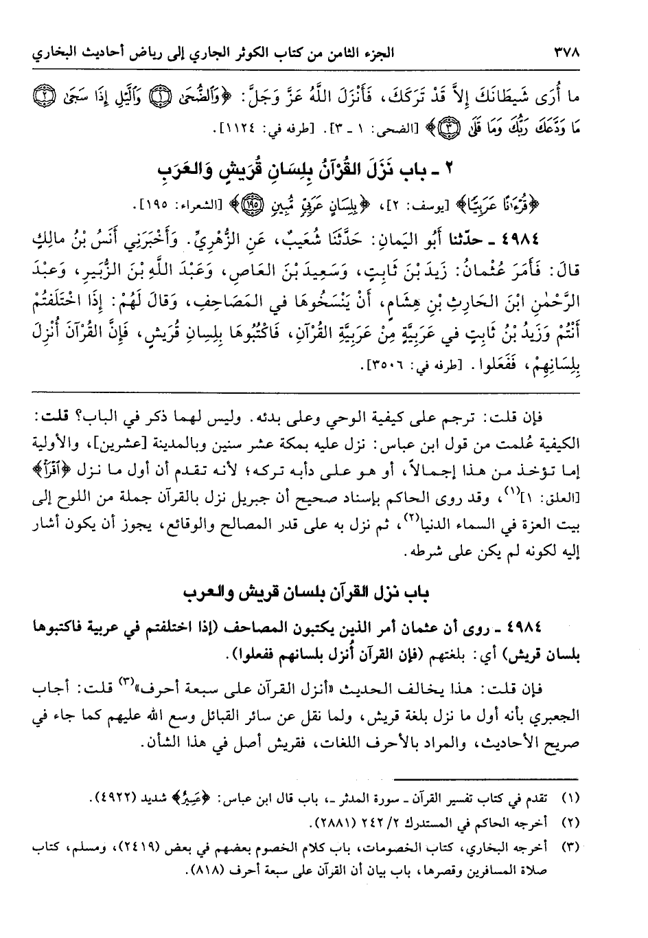 باب نزل القرآن بلسان قريش والعرب