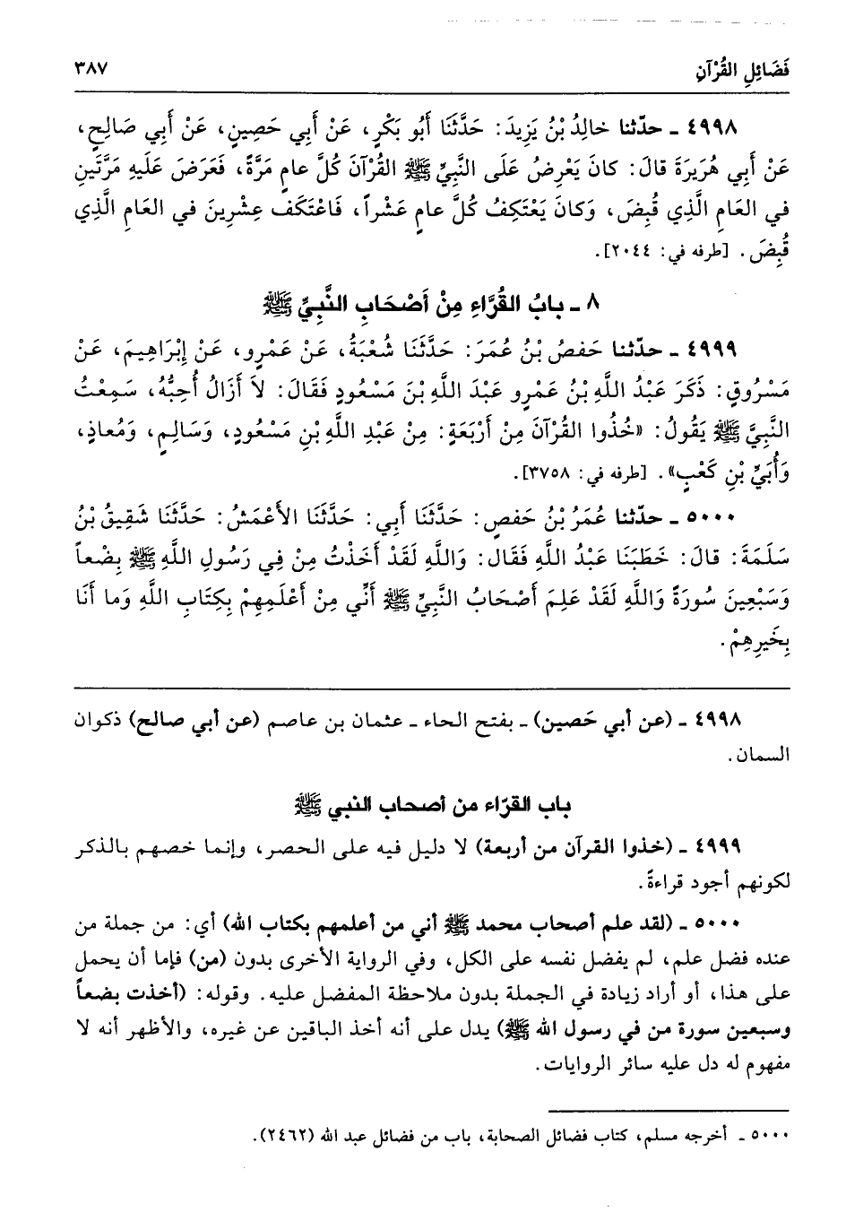 4999 - (خذوا القرآن من أربعة) لا دليل فيه على الحصر، وإنما خصهم بالذكر لكونهم أجود قراءةً.