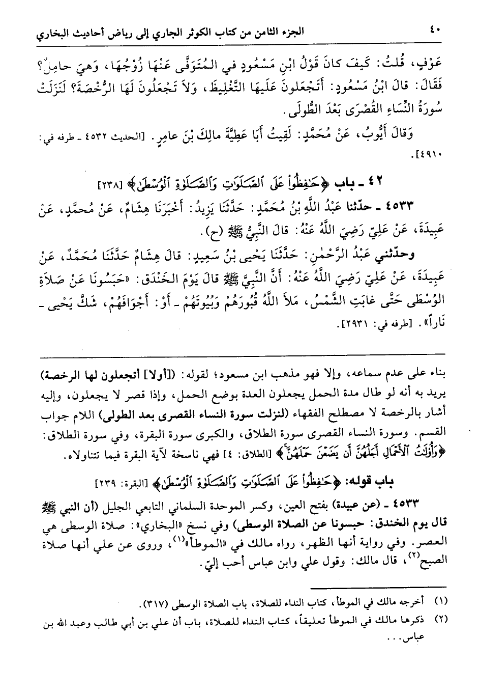 42 - باب (حَافِظُوا عَلَى الصَّلَوَاتِ وَالصَّلاَةِ الْوُسْطَى)