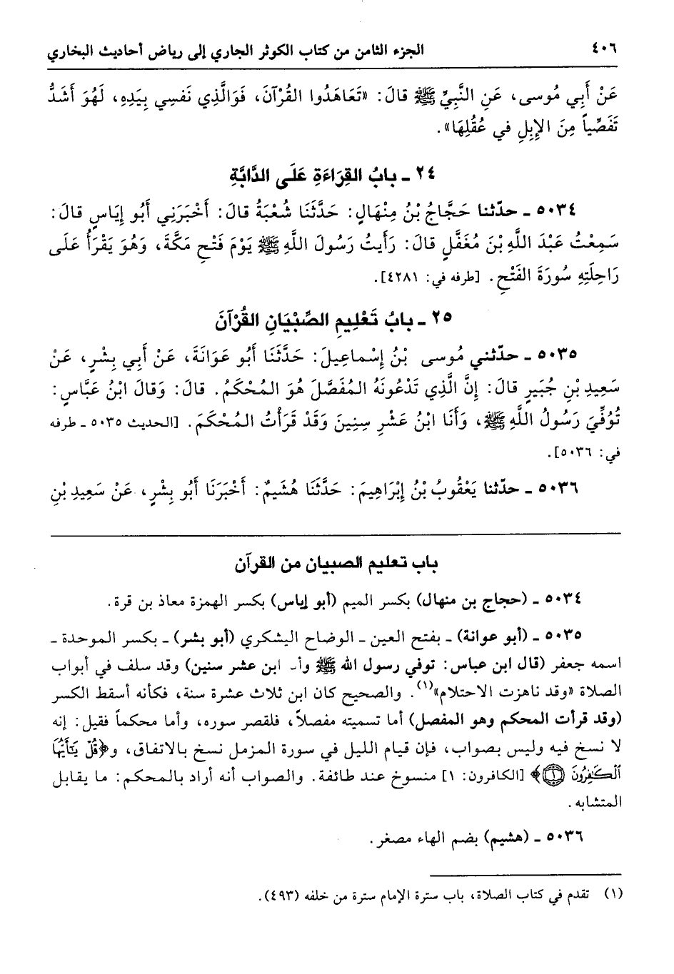 5034 - (حجاج بن منهال) بكسر الميم (أبو إياس) بكسر الهمزة معاذ بن قرة.