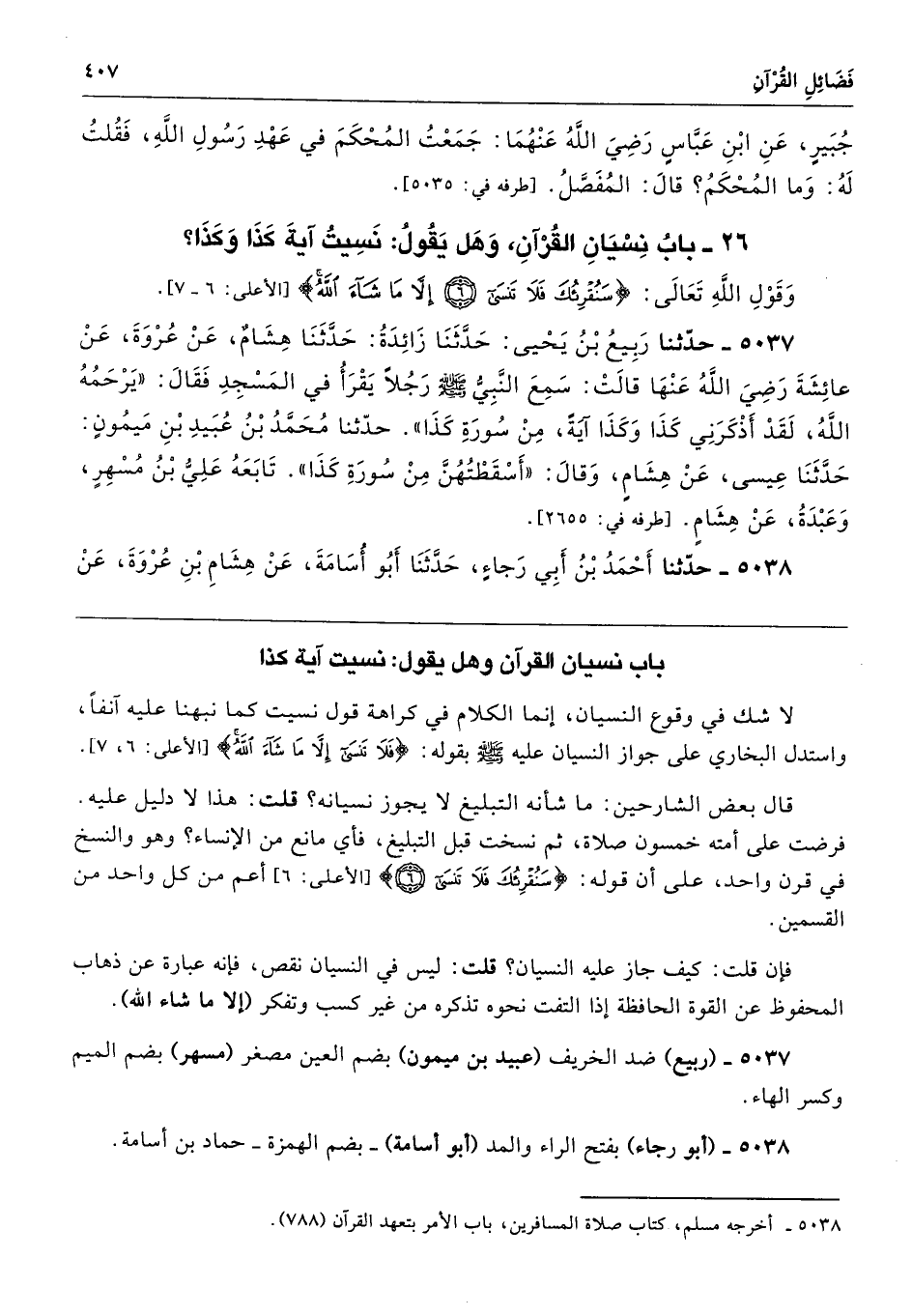باب نسيان القرآن وهل يقول: نسيت آية كذا