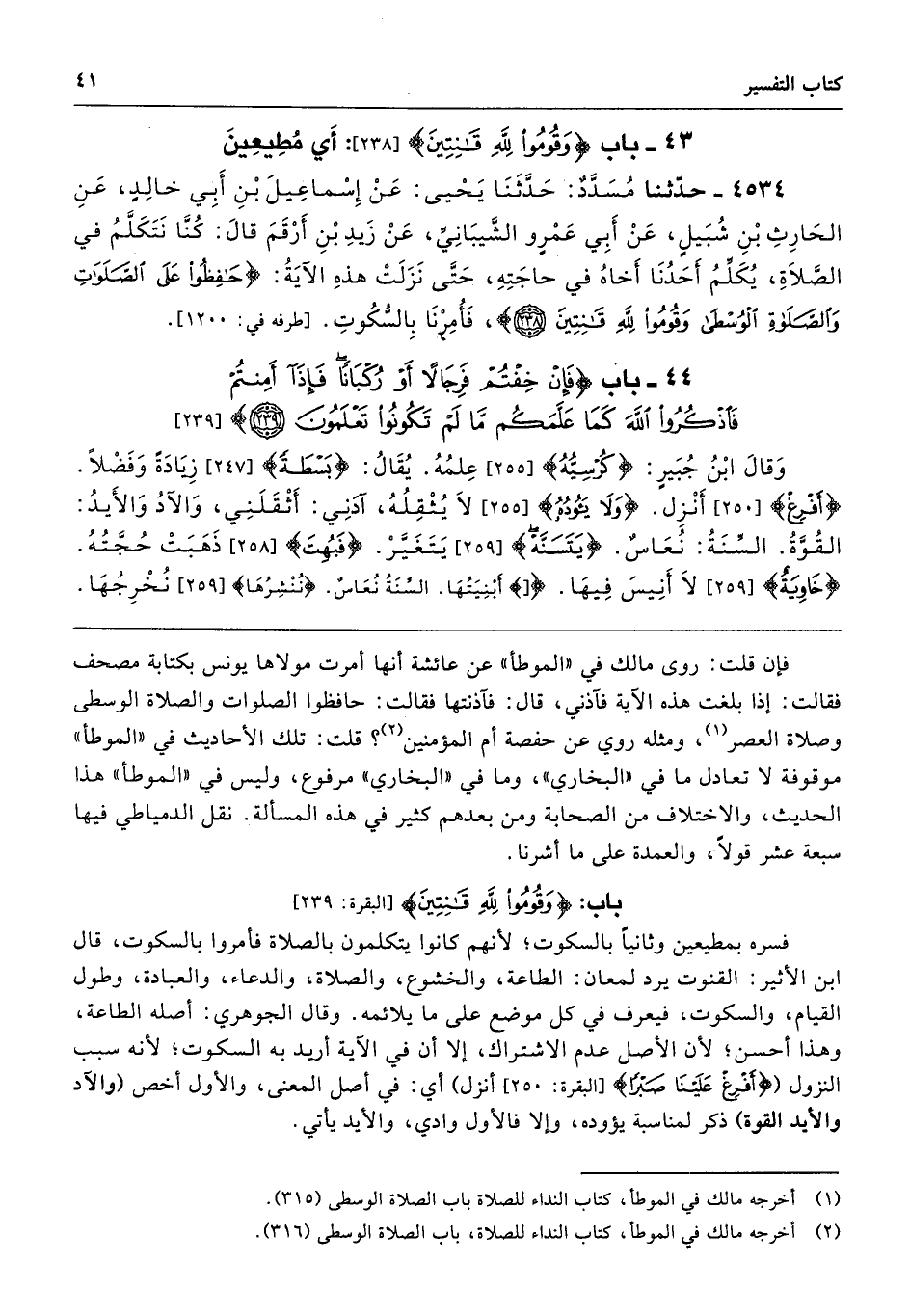 باب: {وَقُومُوا لِلَّهِ قَانِتِينَ} [البقرة: 239]
