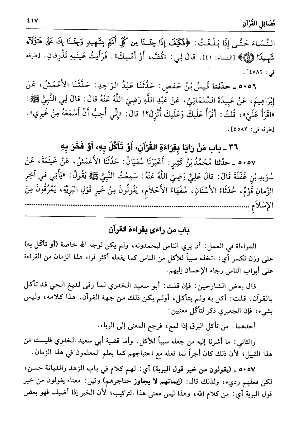 باب من راءى بقراءة القرآن
