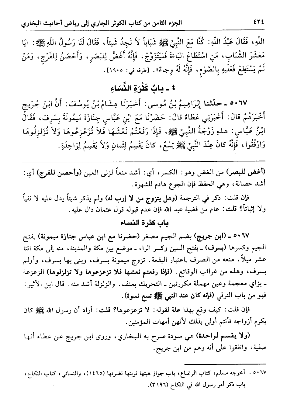 كتاب الكوثر الجاري إلى رياض أحاديث البخاري (اسم الجزء: 8)