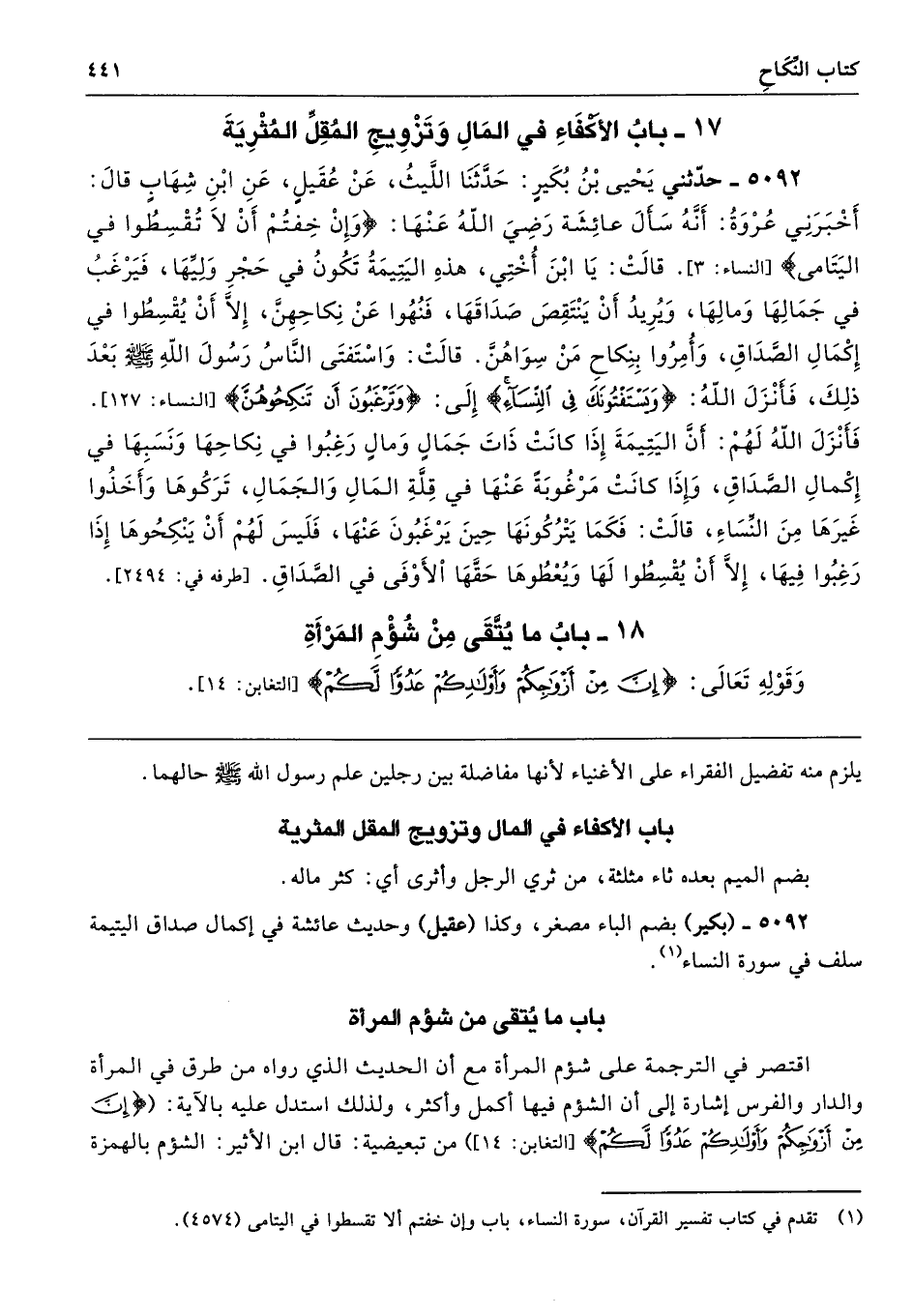 5092 - (بكير) بضم الباء مصغر، وكذا (عقيل) وحديث عائشة في إكمال صداق اليتيمة سلف في سورة النساء.