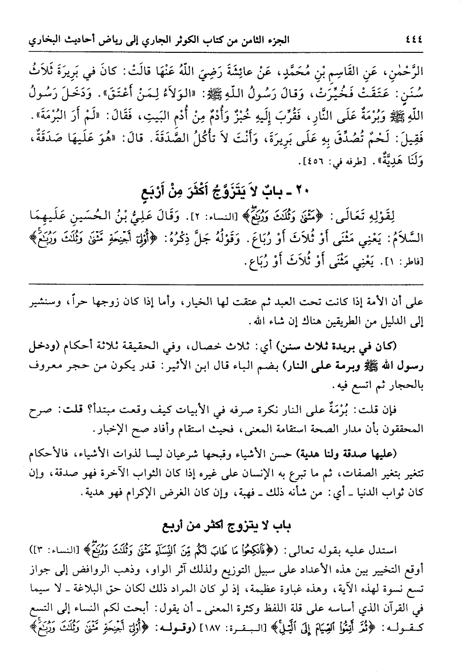 كتاب الكوثر الجاري إلى رياض أحاديث البخاري (اسم الجزء: 8)