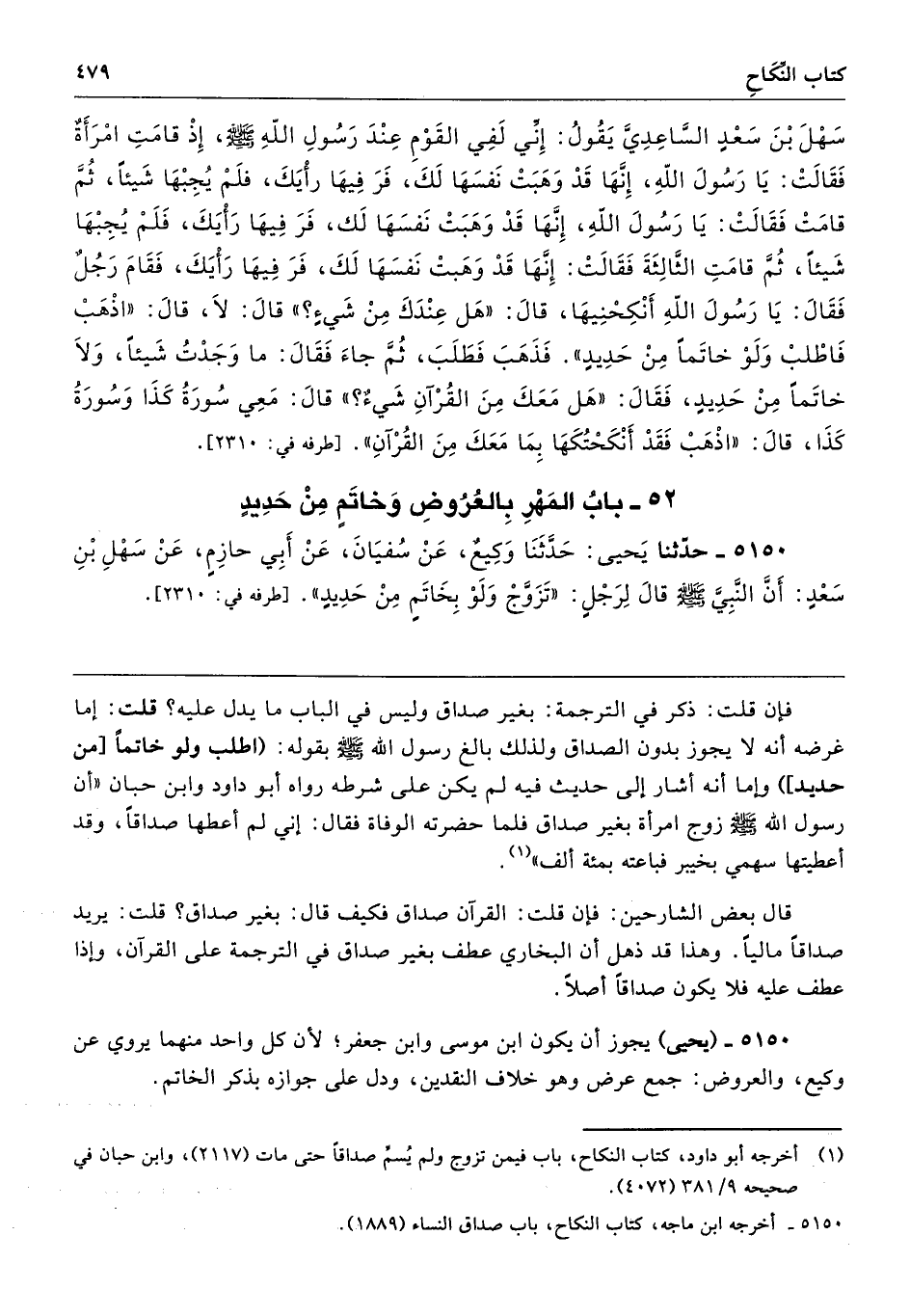 5150 - حَدَّثَنَا يَحْيَى حَدَّثَنَا وَكِيعٌ عَنْ سُفْيَانَ عَنْ أَبِى حَازِمٍ عَنْ سَهْلِ بْنِ سَعْدٍ أَنَّ النَّبِىَّ - صلى الله عليه وسلم - قَالَ لِرَجُلٍ «تَزَوَّجْ وَلَوْ بِخَاتَمٍ مِنْ حَدِيدٍ». طرفه 2310