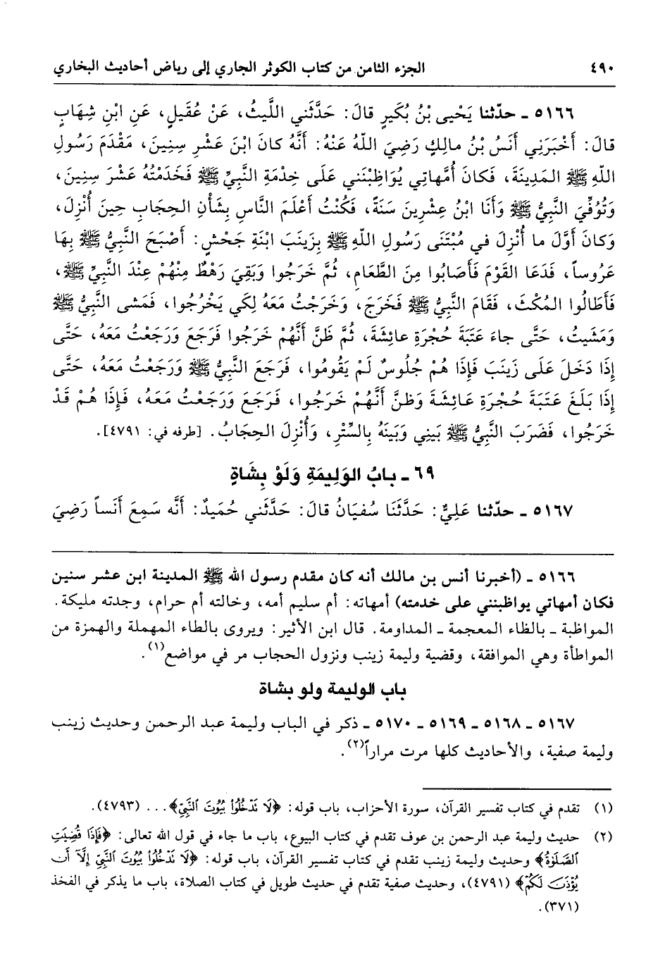 5167 - 5168 - 5169 - 5170 - ذكر في الباب وليمة عبد الرحمن وحديث زينب وليمة صفية، والأحاديث كلها مرت مرارًا.
