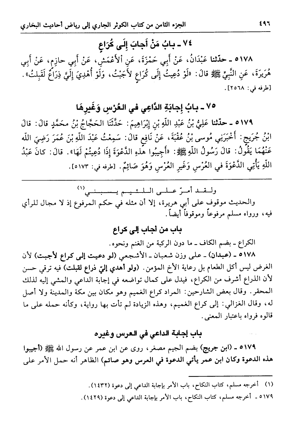 75 - باب إِجَابَةِ الدَّاعِى فِي الْعُرْسِ وَغَيْرِهَا