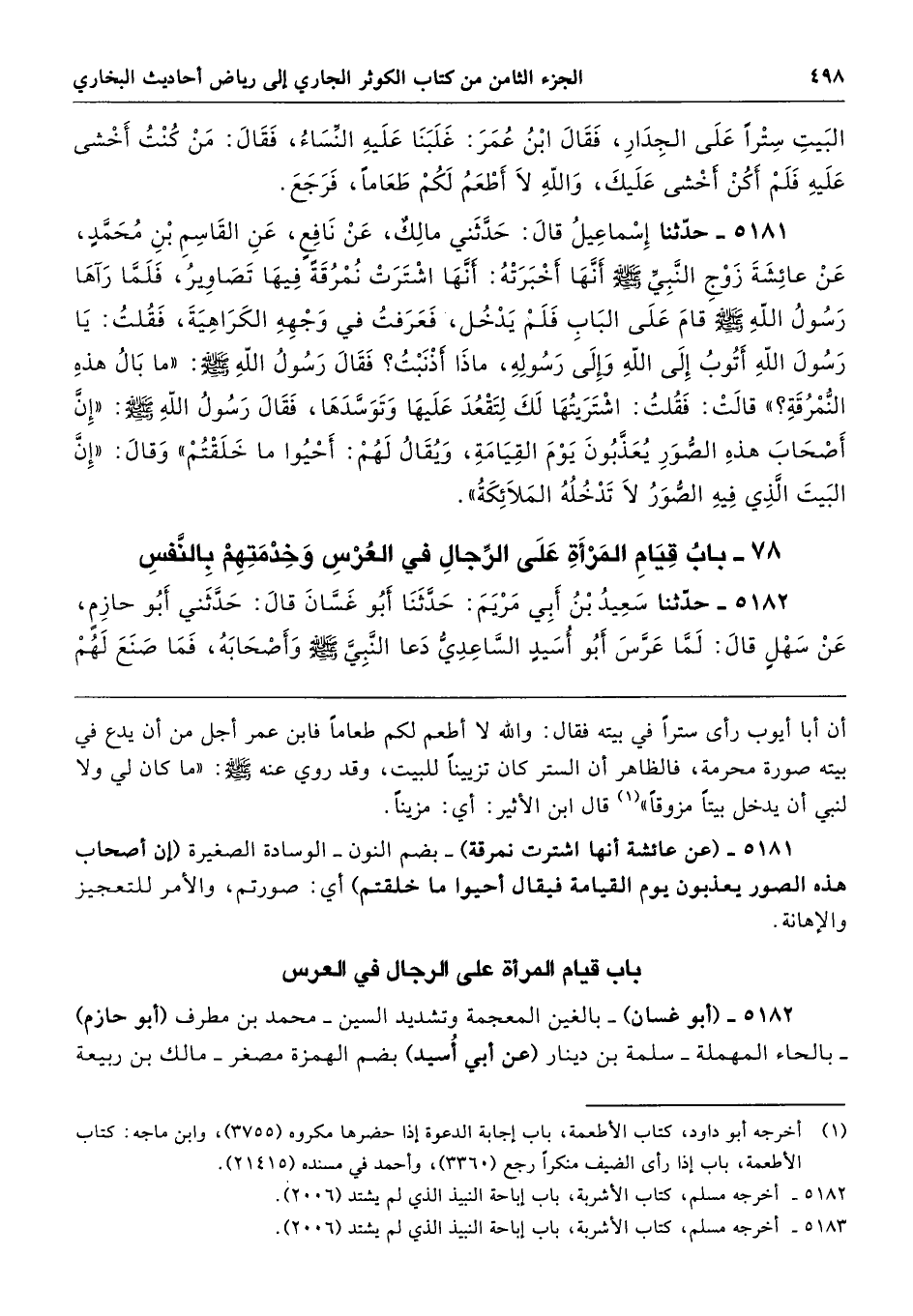 78 - باب قِيَامِ الْمَرْأَةِ عَلَى الرِّجَالِ فِي الْعُرْسِ وَخِدْمَتِهِمْ بِالنَّفْسِ