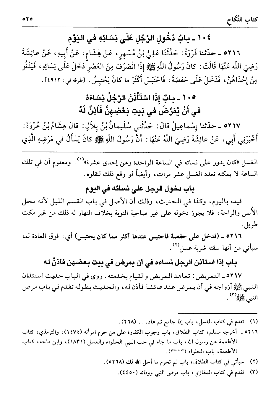 104 - باب دُخُولِ الرَّجُلِ عَلَى نِسَائِهِ فِي الْيَوْمِ