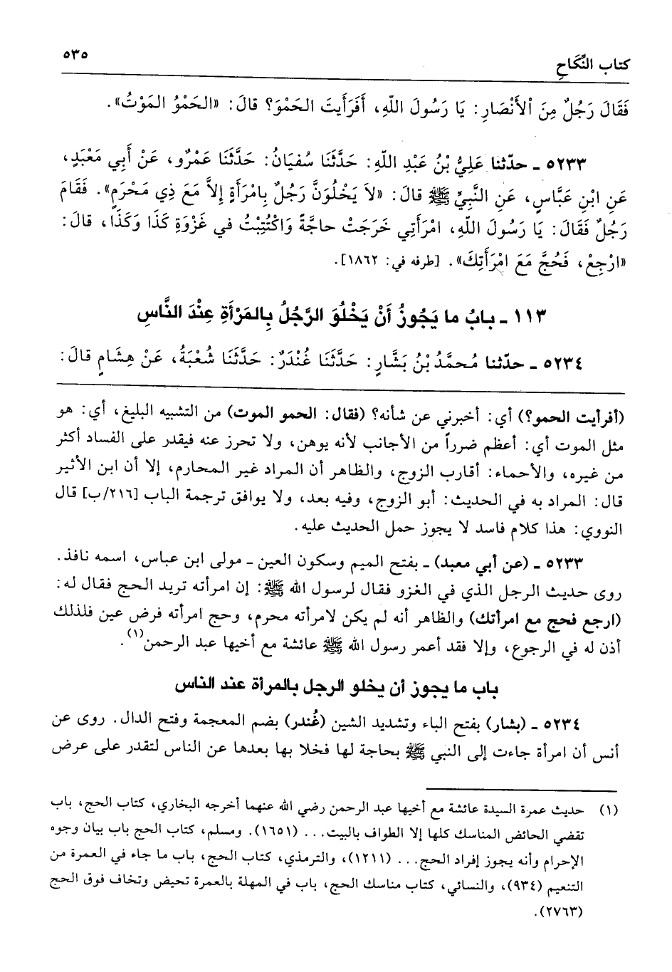 113 - باب مَا يَجُوزُ أَنْ يَخْلُوَ الرَّجُلُ بِالْمَرْأَةِ عِنْدَ النَّاسِ