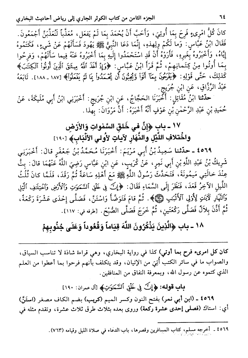 كتاب الكوثر الجاري إلى رياض أحاديث البخاري (اسم الجزء: 8)