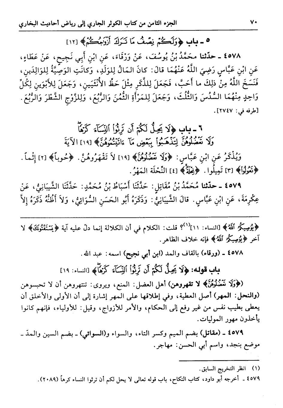 باب قوله: {لَا يَحِلُّ لَكُمْ أَنْ تَرِثُوا النِّسَاءَ كَرْهًا} [النساء: 19]