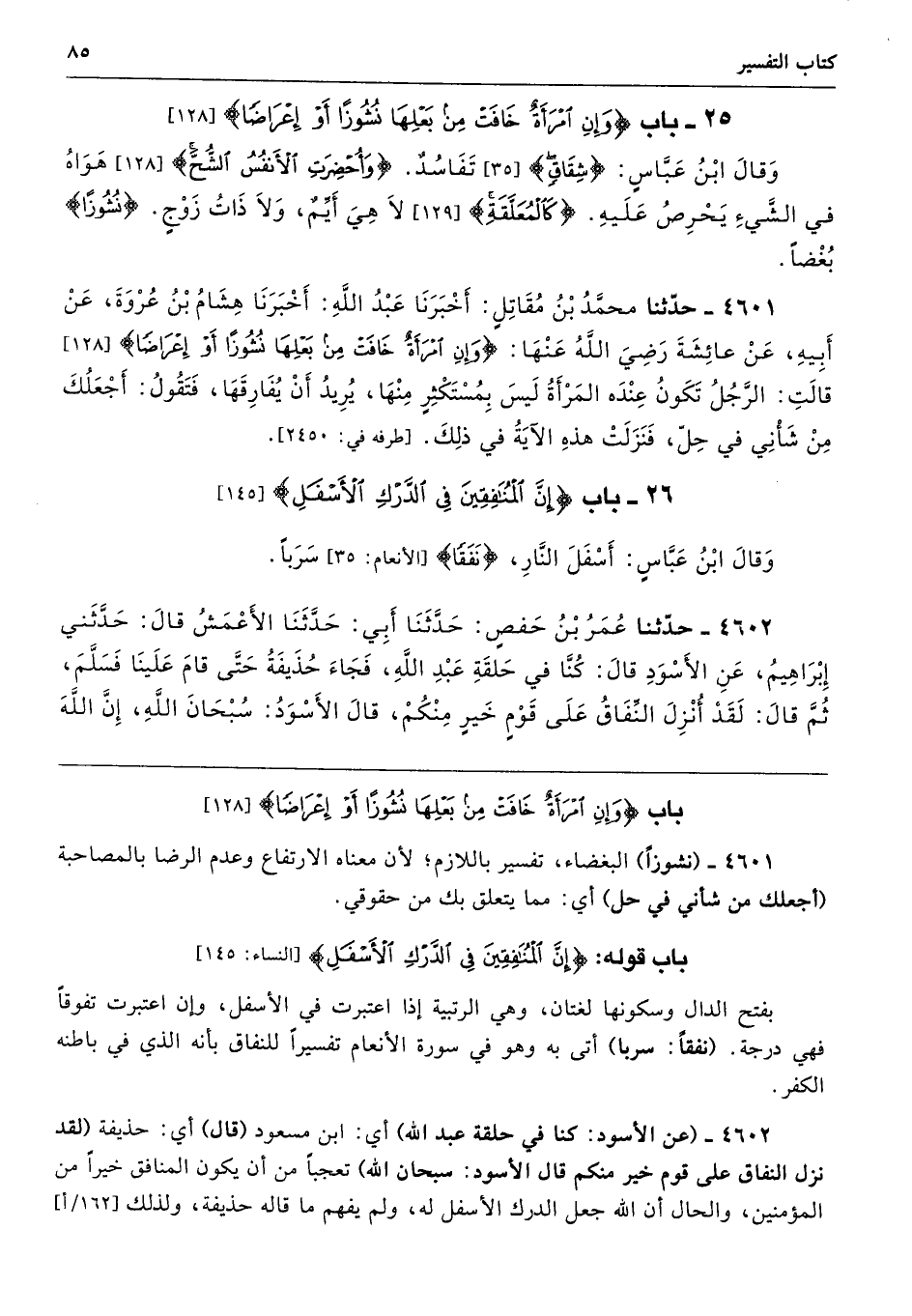 باب قوله: {إِنَّ الْمُنَافِقِينَ فِي الدَّرْكِ الْأَسْفَلِ} [النساء: 145]
