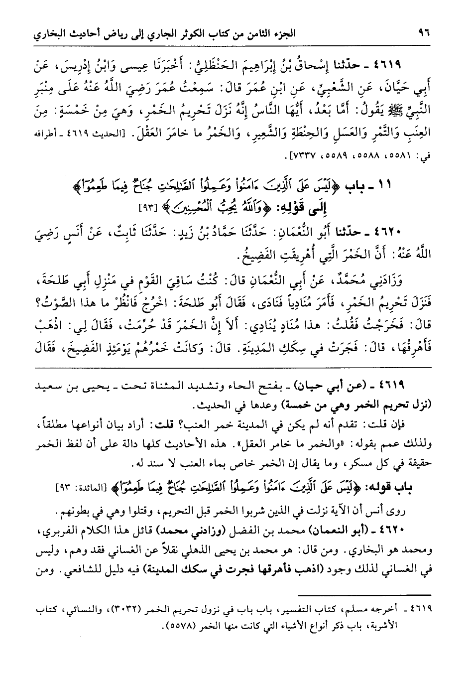 4619 - (عن أبي حيان) -بفتح الحاء وتشديد المثناة تحت- يحيى بن سعيد (نزل تحريم الخمر وهي من خمسة) وعدها في الحديث.