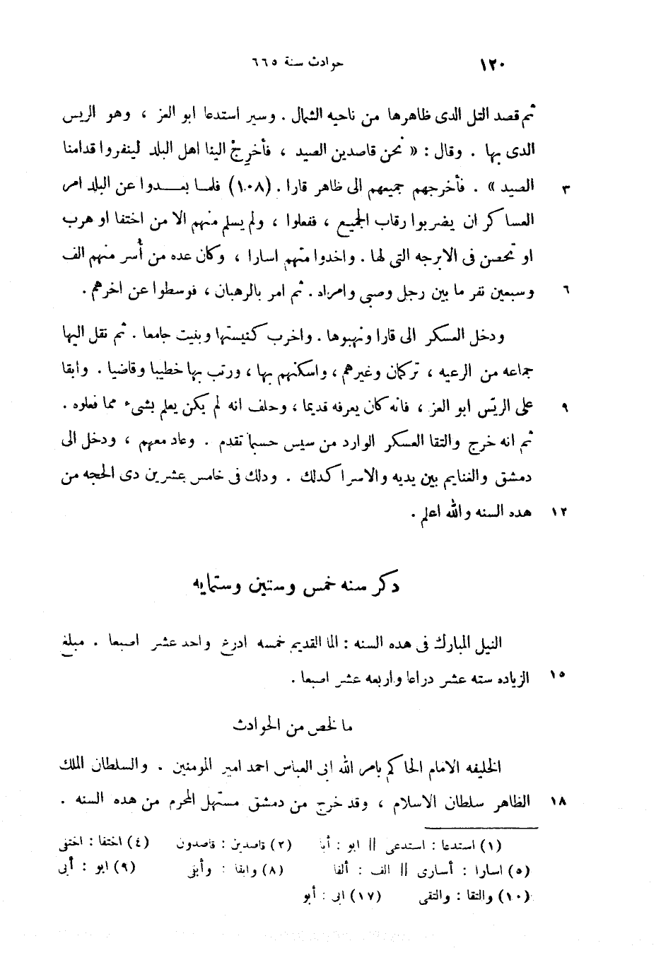 الخليفه الامام الحاكم بامر الله ابى (17) العباس احمد امير المومنين، والسلطان الملك الظاهر سلطان الاسلام، وقد خرج من دمشق مستهل المحرم من هده السنه.