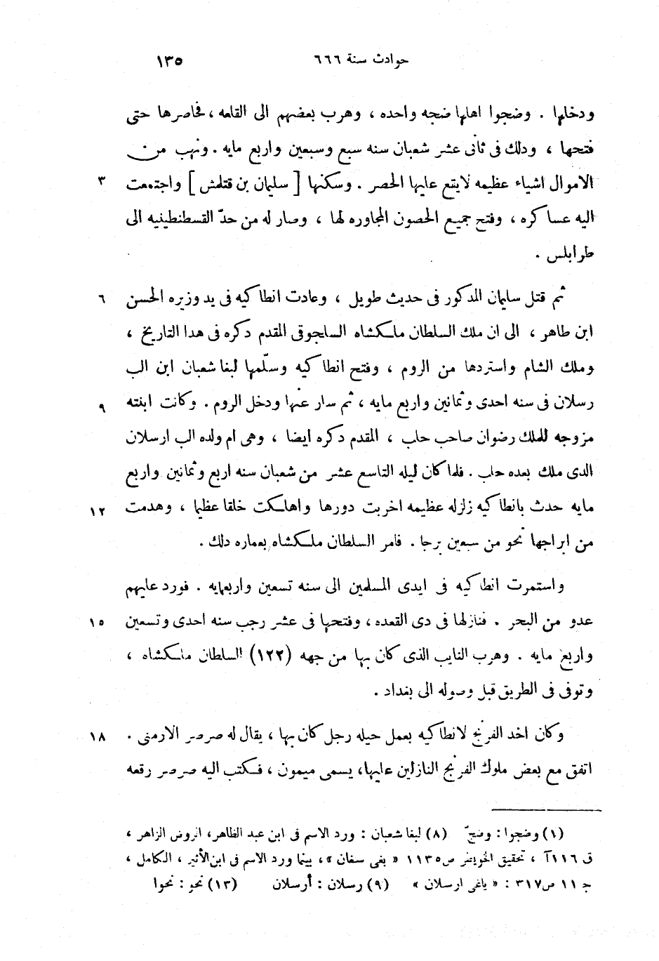 (8) لبغا شعبان: ورد الاسم فى ابن عبد الظاهر، الروض الزاهر، ق 116 آ، تحقيق الخويطر ص 1135 «بغى سغان»، بينما ورد الاسم فى ابن الأثير، الكامل، ج 11 ص 317: «ياغى ارسلان»
