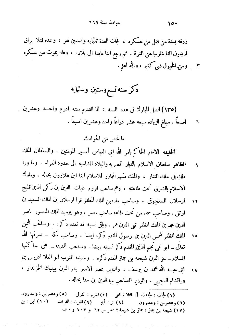 (135) النيل المبارك فى هده السنه: الما القديم سته ادرع واحد وعشرين (5) اصبعا. مبلغ الزياده سبعه عشر دراعا واحد وعشرين (6) اصبعا.