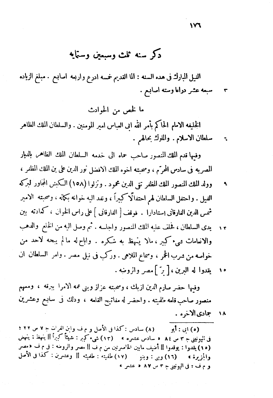 (8) سادس: كذا فى الأصل وم ف وابن الفرات ج 7 ص 22؛ فى اليونينى ج 3 ص 84 «سادس عشره»