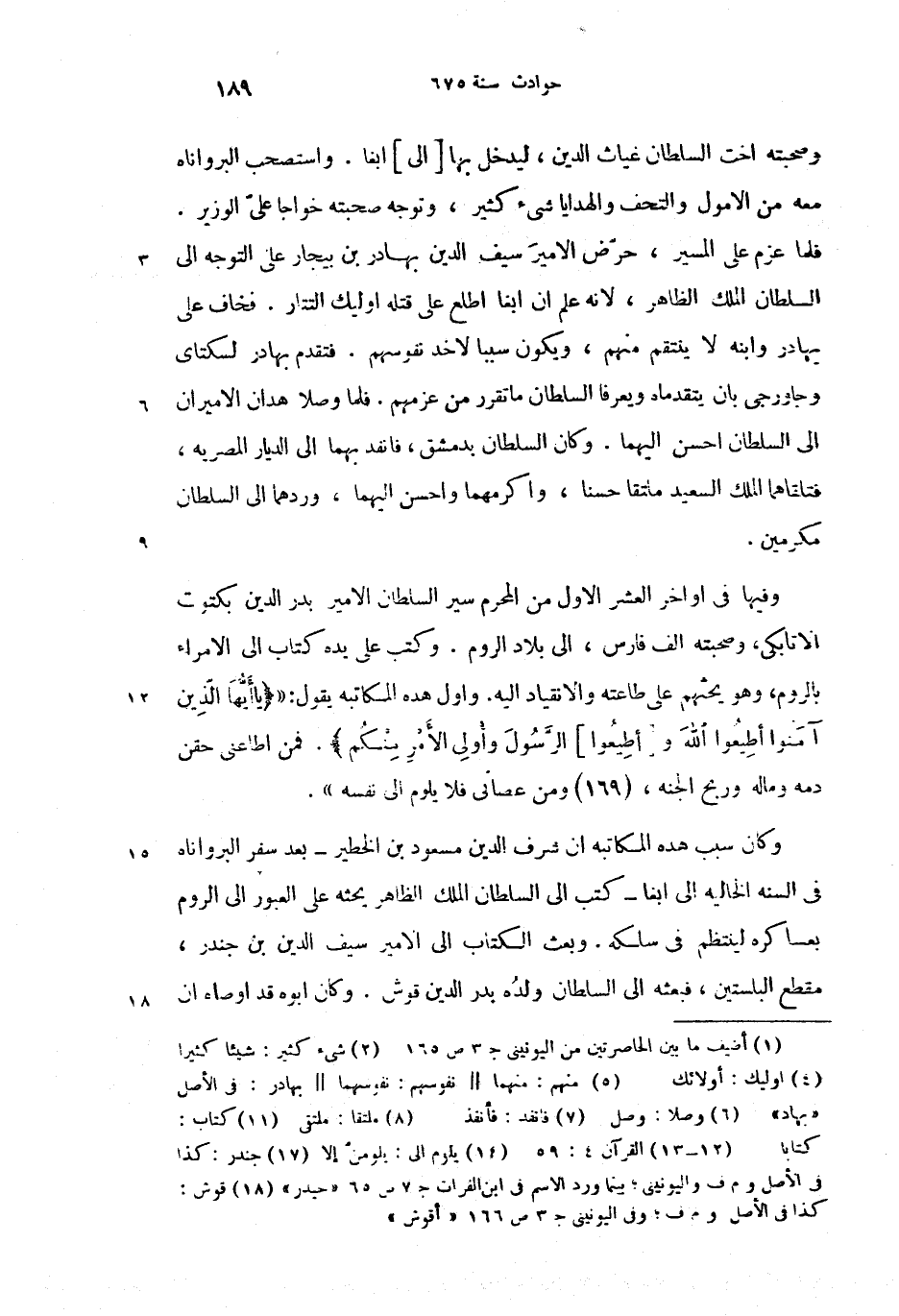 وفيها فى اواخر العشر الاول من المحرم سير السلطان الامير بدر الدين بكتيت الاتابكى، وصحبته الف فارس، الى بلاد الروم. وكتب على يده كتاب (11) الى الامراء بالروم، وهو يحثهم على طاعته والانقياد اليه. واول هده المكاتبه يقول: «{يا أَيُّهَا الَّذِينَ آمَنُوا أَطِيعُوا اللهَ وَ [أَطِيعُوا] الرَّسُولَ وَأُولِي الْأَمْرِ مِنْكُمْ} (13). فمن اطاعنى حقن دمه وماله وربح الجنه، (169) ومن عصانى فلا يلوم (14) الى نفسه».