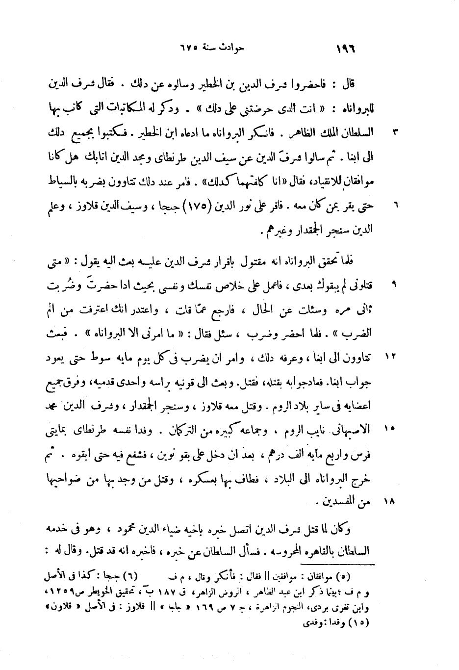 (6) جنجا؟؟؟: كذا فى الأصل وم ف؛ بينما ذكر ابن عبد الظاهر، الروض الزاهر، ق 187 ب، تحقيق الخويطر ص 1259، وابن تغرى بردى، النجوم الزاهرة، ج 7 ص 169 «جاجا» --قلاوز: فى الأصل «قلاون»