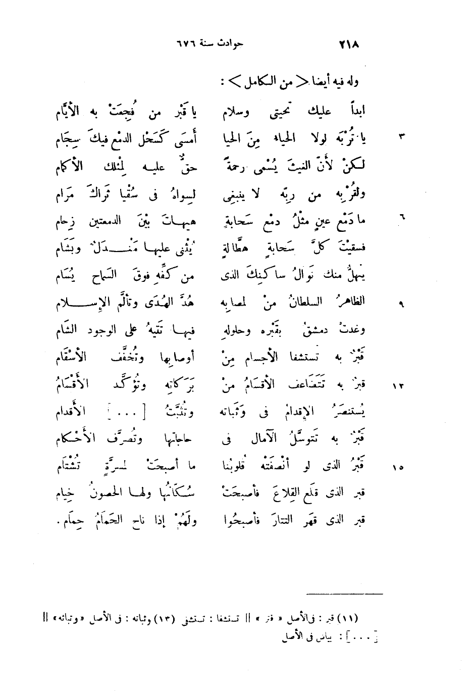 قبر الذى لو أنصفته قلوبنا … ما أصبحت لمسرّة تشتام