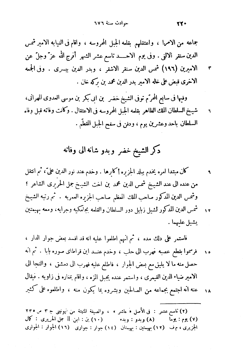 (2) تاسع عشر: فى الأصل «عاشر»، والصيغة المثبتة من اليونينى ج 3 ص 235.